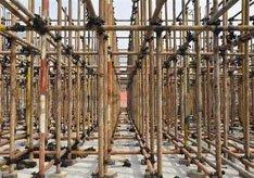2.冲压钢脚手板的材质应符合现行国家标准《碳素结构钢》(GB/T700)中Q235—A级钢的规定,其质量与尺寸允许偏差应符合规范要求.木脚手板应采用杉木或松木制作,其材质应符合现行国家标准《木结构设计规范》(GB50005--2003)中II级材质的规定.脚手板厚度不应小于50mm,在现场铺设时,其两端应各设直径为4mm的镀锌钢丝箍两道:现在大多数工地采用竹脚手板,因为竹脚手板重量较轻,又能防滑,竹脚手板宜采用由毛竹或楠竹制作的竹串片板\竹笆板.